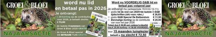 Nog 20 DIY (do it yourself) pakketten beschikbaar bij IntratuinExclusief voor de lezers van deze nieuwsbrief hebben wij met Intratuin een DIY pakket samengesteld om een bloemenbollenmand te maken. Het pakket bestaat uit: Margreet Roelse, coördinatie groenworkshops ![]() Middaglezing Thee uit eigen tuin 7 oktoberDoor: Helen Otting van Heleno Kruiden https://helenokruiden.nl/wp/ Locatie: de Zandput, Zandput 5 Serooskerke Datum: dinsdag 7 oktober Tijd: 14:00-16:00 uur Heleno kruiden is opgezet door Helen Otting. Op het moment dat zij de wereld van de kruiden instapte werd haar duidelijk dat haar hele tuin een kruidentuin moest worden. Om haar kennis verder te verdiepen volgde zij de Herboristen opleiding van De Sprenk waar zij in 2005 voor slaagde. In 2005 heeft zij de aanzet gegeven om het Herboristen Gilde op te richten. Een vereniging van vakbekwame Herboristen. En nu geniet zij vooral van haar kruidentuin, de producten die zij maakt met kruiden en het overbrengen van de kennis over kruiden. Het thema van de lezing is: "Thee uit eigen tuin". Er wordt aan de hand van foto’s en beschrijving van een twintigtal kruiden uitleg geven hoe je de kruiden kunt verzamelen, drogen, welke uitwerking ze hebben en hoe je een heerlijke kruidenthee kunt samenstellen. Ook wordt er geproefd. Van alles wat verteld wordt tijdens de lezing zijn er ook producten te koop. Nog even ter informatie. De afgelopen lezing bleek dat het geluid weer te wensen overliet. Er is contact met de Zandput om het geluid te verbeteren. ![]() Planten(ruil)beurs 11 oktoberStaat deze datum al in je agenda? Want dan gaan we weer, onder het genot van een kopje koffie of thee, voor de tweede keer dit jaar, van start met het ruilen van planten, stekjes, bolletjes, zaden en meer. Je bent ook van harte welkom als je geen plantjes/stekjes heeft om te ruilen!! Ik zie je graag op 11 oktober, vriendelijke groet Astrid van der Poel, coördinator Open en Tuinen/planten[ruil]beurs Herfstwandeling Oranjezon zaterdag 25 oktoberOp zaterdagmorgen 25 oktober organiseren wij een extra activiteit. Onder leiding van gidsen van Het Zeeuwse Landschap maken wij een herfstwandeling in natuurgebied Oranjezon. In deze tijd van het jaar met de herfstkleuren, een prachtig gebied! De ledenprijs is € 8,50 per persoon. De prijs voor niet-leden is € 13.50 Opgeven kan tot 17 oktober via de website met het aanmeldformulier. Daarvoor klik je hier: Hopelijk gaan veel mensen mee met deze leuke wandeling! Liesbeth en Sietske ![]() Groenworkshop Creatief Najaar bij Ilse van Es zaterdag 25 oktoberIn het sfeervolle atelier van Ilse gaan we aan de slag met een creatieve creatie met als thema "herfst". Hierbij denken we vooral aan het verwerken van bessen, rozenbottels, bladmateriaal en dit aan te vullen met bloemen in warme tinten. Ilse maakt gebruik van duurzame materialen en er is altijd iets lekkers bij de koffie/thee. Voor wie Ilse nog niet kent, kijk eens op haar website: ilsevanesbloemenatelier.nl. Aanmelden kan via het aanmeldformulier, daarvoor klik je hier: Datum: zaterdag 25 oktober ![]() Welkom nieuwe ledenIn de nieuwsbrief van augustus 2025 zijn de nieuwe leden, die in de periode daarvoor lid geworden waren, welkom geheten. In de afgelopen periode van 21 augustus 2025 t/m heden (17 september 2025) zijn er 4 nieuwe leden bijgekomen en dit jaar dus 33 nieuwe leden. Twee nieuwe leden zijn lid geworden via Sietske tijdens de lezing “Stikstof in de tuin en de hele wereld” en komen uit Noordwelle en Ouwerkerk. Twee nieuwe leden uit Middelburg waarvan 1 lid is geworden via de ledenadministratie van onze afdeling na de mooie en gezellige meerdaagse tuinreis naar Normandië en 1 lid is geworden via de landelijke website. De nieuwe leden zijn of worden welkom geheten middels een welkomstmail en enige informatie en een welkomsttas met inhoud van onze afdeling. (Zie foto hieronder). Het aantal leden per 1-1-2025 was 424 leden en nu hebben we een aantal leden van 448 leden. ![]() Nieuwe NajaarsledenwerfactieDe nieuwe Najaarsledenwerfactie is als volgt: - Lid worden via de afdeling is extra aantrekkelijk en voordelig voor het nieuwe lid en de afdeling. De Najaarsledenwerfactie loopt van 19 september t/m 13 november.