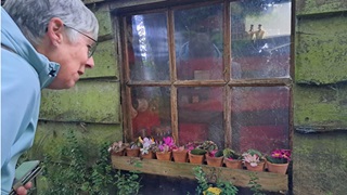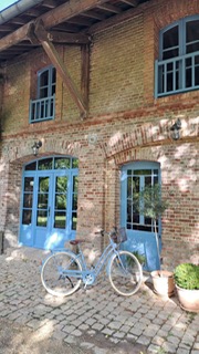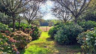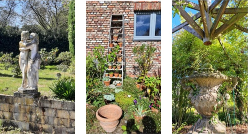 Met de oude stenen wordt een woonhuis met prachtige gevel gebouwd met daarachter appartementen; al hun ideeën worden in de tuin uitgewerkt. Ideeën te over, die allen worden uitgevoerd samen met een tuinarchitect. Een grote landschapstuin van 1,5 ha werd het resultaat, waardoor zij eigenlijk het onderhoud niet meer kunnen bijbenen. “Elke dag is er genoeg werk, maar rustig aan”, is wat Willy zei. “Snoeischaar altijd bij de hand.” De tuin grenst aan een groot natuurgebied, en een weide met twee ezels. Het beeld van een liefdespaar, dat in de Italiaanse tuin staat langs de vijver maakt veel indruk op ons, als ook de Prairie-tuin, met de vele mooie grassen. Willy laat ons vol trots ook de nieuwste borders zien, de tuin van de toekomst.