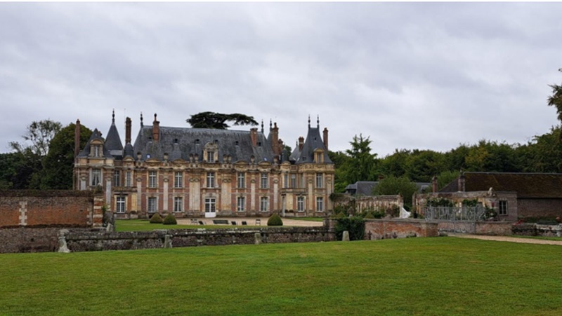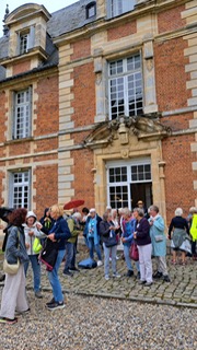 Op het programma stond een bezoek aan Chateau de Miromesnil nabij Tourville – sur – Arques, in de buurt van Dieppe, zo’n klein uur rijden. Op weg naar het kasteel werden we door onze reisleidster Hermine voorbereid op wat we te zien zouden gaan krijgen en ze zei geen woord te veel. Na een korte wandeling stonden we voor de hekken van een imposant gebouw met een brede oprijlaan. De tuin is in 1948 aangelegd door de grootmoeder van de huidige eigenaar. Haar naam was Simone de Vogue. Ooit werd hier de beroemde schrijver Guy de Maupassant geboren. We werden ontvangen door een allervriendelijkste gids die ons in het Engels toesprak. Het leek wel of we naar een aflevering van “Alo, alo” keken, maar het belangrijkste was dat we hem begrepen. Hij vertelde ons over de geschiedenis van het kasteel en leidde ons er vervolgens in rond. We bekeken de kamers van de benedenverdieping die nog helemaal in stijl waren ingericht en aangekleed. Plots sprong onze gids achter vleugel en met ferme aanslag speelde hij twee prachtige muziekstukken. Terwijl een groot deel van het gezelschap al was doorgelopen naar een andere kamer, kwam er nog een toegift. Het klonk prachtig en paste helemaal bij de omgeving. Je kon je helemaal voorstellen hoe het er hier vroeger aan toeging.