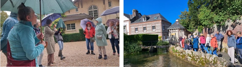 Een city tour door Dieppe, langs haven en boulevard en door naar Veules les Roses. De zon scheen weer dus konden we uit de bus voor een korte, pittoreske wandeling langs de kortste rivier in Frankrijk: van bron tot zee 1 kilometer. En toen was het tijd om weer naar Saint Valery – en – Caux te gaan. Halverwege stapten twee dames uit om over het strand naar ons hotel te lopen. Door de vervroegde terugkeer was er nog even tijd om vóór het diner vanuit het hotel naar de zee te lopen. Velen deden dat. De dag werd afgesloten met een copieus dessert zodat niemand nog te klagen had over het hebben van trek.