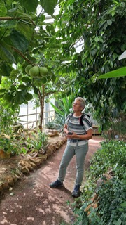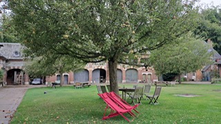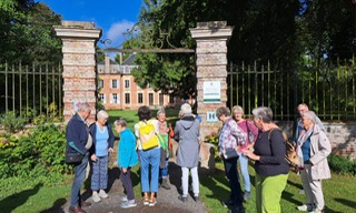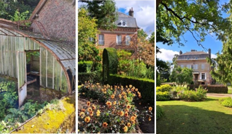 Na een lekker ontbijt, terug naar de kamer, onze koffers gepakt en om 9.00 uur de bus in naar het plaatsje Morvillers-Saint-Saturnin. Daar gaan we de tuin: Jardin Floral du Château de Digeon bezoeken. We worden hartelijk ontvangen door de heer des huizes François Goisque. Na een korte uitleg over het Château neemt hij ons mee op een rondleiding over zijn prachtige landgoed. Door de schuur lopend met een prachtig houten dak, komen we bij allemaal eilandjes die een tuin vormen gevuld met bloemen, struiken en bomen. We zien een hele bijzondere boom met prachtige vruchtjes (blauw hartje met rode blaadjes), dit blijkt de pindakaas boom te zijn. Deze naam dankt hij aan de sterke pindakaas geur van de bladeren.