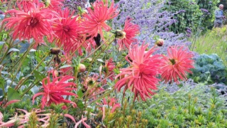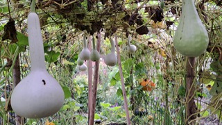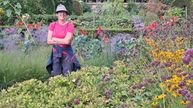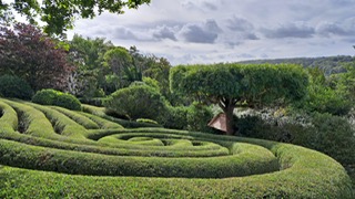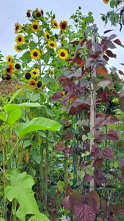 Verder in de tuin zien we 2 enorme reuzen; de Ginko biloba en de Sequoia. Daarna lopen we door naar le Potager. Hier zien we meerdere moestuinen met verschillende vormen, kleuren, groenten gecombineerd met eenjarigen, heesters en vaste planten.