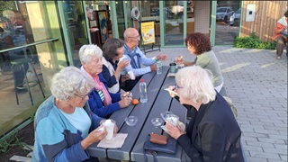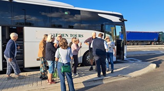 Iets na half vier gaan we de tuin verlaten en krijgen we buiten de bus koffie en een knabbeltje. En dan gaan we op weg naar ons hotel in Saint Valéry – en - Caux.