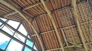 Gisteren had het letterlijk ‘gedonderd’ met een stortbui zó heftig dat we helaas het bezoek aan Le Jardin du Vasterival voortijdig hadden moeten beëindigen wegens acuut levensgevaar van bliksem en glibberige steile paadjes. Gelukkig hadden we nog wel van het lieflijke straatje met riviertje in Veules-les-Roses kunnen genieten met een typisch Normandisch huis met rieten dak met op de vorst een rij stengels van irissen die nu uitgebloeid waren.