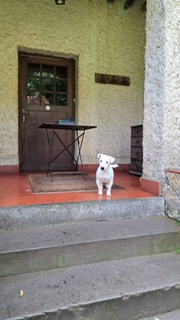 Onze uitstekende chauffeur Miranda had haar bus vlak bij de ingang, heel dicht langs de heg op het gras geparkeerd. In en uitstappen moest dus over een smalle strook; gelukkig hadden wij allen bij het uitstappen de twee verse hondendrollen weten te vermijden. Na het bezoek van de bus naar de Pharmacie stond de bus iets anders en waren het er geen 2 maar drie! Gelukkig was er éen medereiziger die wat eerder terug was, die ze alle drie niet alleen had opgemerkt maar ook bereid was ze met een paar weggooihandschoenen te verwijderen. Het was ondenkbaar dat er niemand van de rest van ons gezelschap niet tenminste in éen van die vieze drollen getrapt zou hebben en daarmee de vloerbedekking van de nieuwe Mercedes zou hebben besmeurd en ons allen de terugreis in de stank zou hebben gezet óf Miranda voor de opgave geplaatst de boel grondig schoon te maken. We zijn aan een ramp ontkomen. Een speelgoedschepje in de bagageruimte zou tot de standaarduitrusting van de bus moeten horen, toch? We waren weer veilig en op tijd in ons Hotel de Casino in Valerie - en - Caux, klaar voor weer een lekkere Franse avondmaaltijd. Hierboven meldde ik dat we niet wisten hoe de naam ‘Les Jardins Suspendus’ vertaald moest worden: ‘hangende tuinen’ hebben we deze derde dag geen van allen gezien. Ik denk dat de Fransen in de war zijn met het Nederlandse woord ’suspense’ dat ook ‘spanning>spannend>opwindend enz. kan betekenen. Ik vond ‘Spannende Tuinen’ een misschien betere vertaling.
