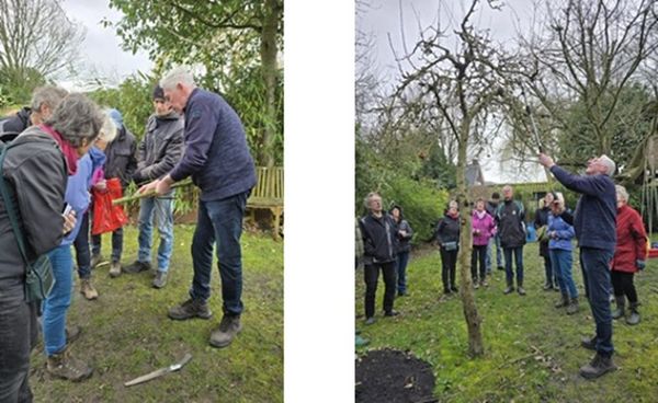 Dit jaar zijn er twee snoeicursussen gegeven vanwege het grote aantal aanmeldingen en omdat we het aantal cursisten per cursus op maximaal 10 deelnemers wilden houden. De cursussen werden gegeven door Jan Pouwelse, van Pouwelse Groenadvies, in de tuin van twee van de deelnemers. Op 28 februari in de tuin van Arjan de Visser aan de Koudekerkseweg in Middelburg en op 8 maart in de tuin van Mieke Reynen aan de Middelburgsestraat in Koudekerke. Jan heeft lange ervaring met snoeien als hovenier. Hij is heel enthousiast om zijn kennis over te dragen. Er is werkelijk geen vraag die hij niet kan beantwoorden, zo is gebleken.