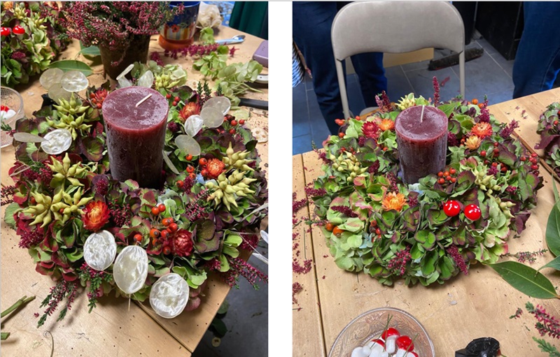 Als laatste werd de kaars geplaatst in de krans, en ging iedereen met een voldaan gevoel en een mooi werkstuk naar huis. Dank je wel Ilse en alle deelnemers voor deze leuke workshop!