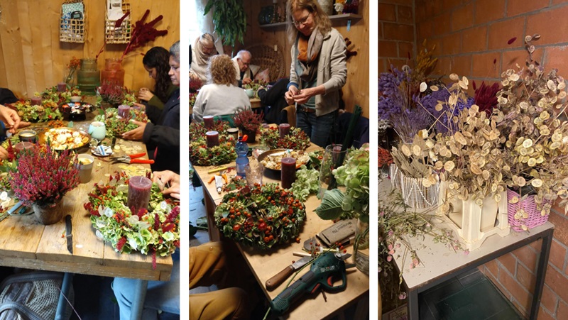 Alles lag al klaar en na koffie en thee met iets lekkers zijn we begonnen aan een herfstkrans.